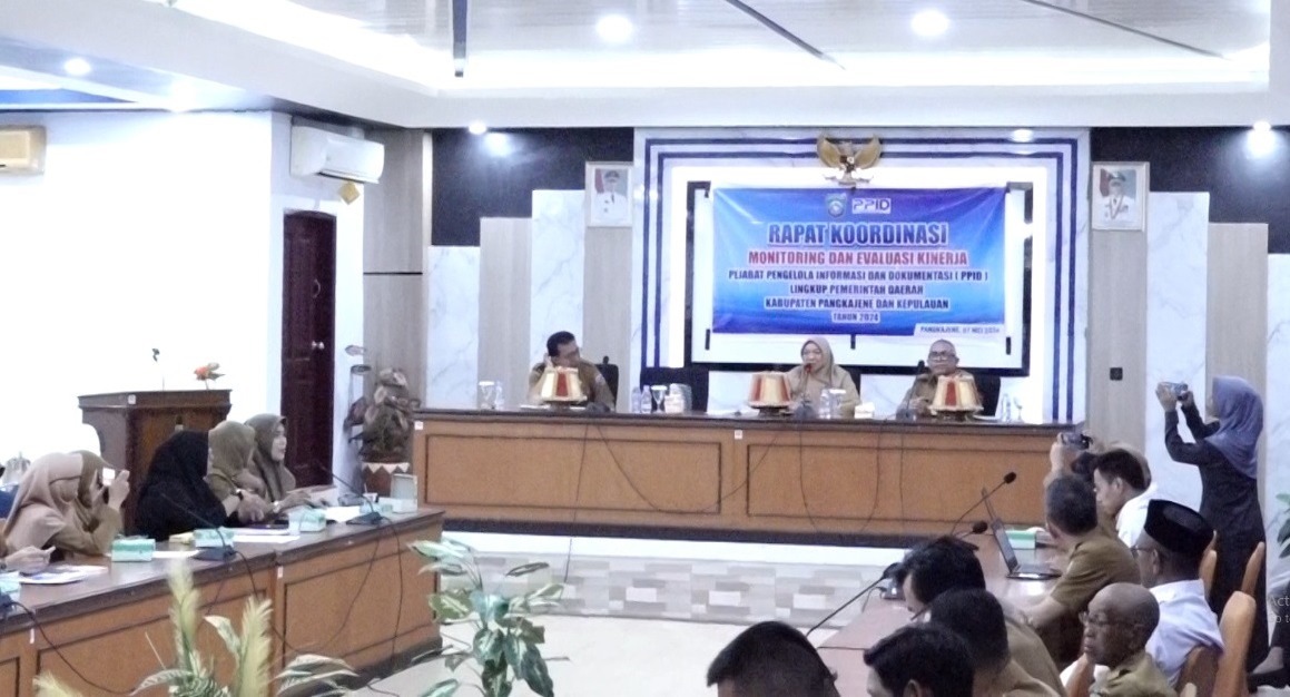 Dinas Komunikasi SP Pemerintah Kabupaten Pangkep, melaksanakan monitoring dan evaluasi terkait kinerja Pejabat Pengelola Informasi dan Dokumentasi (PPID) lingkup Pemda Pangkep tahun 2024 yang berlansung di ruang rapat lantai 3, kantor B Pangkep, Selasa, 7 Mi 2024.